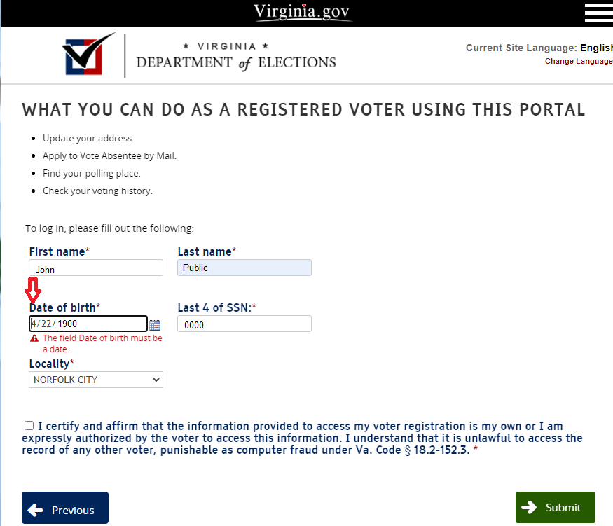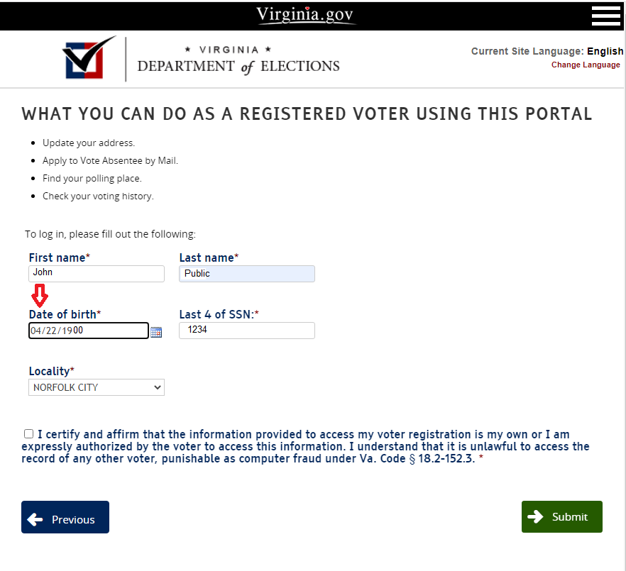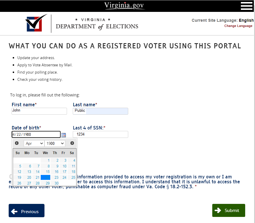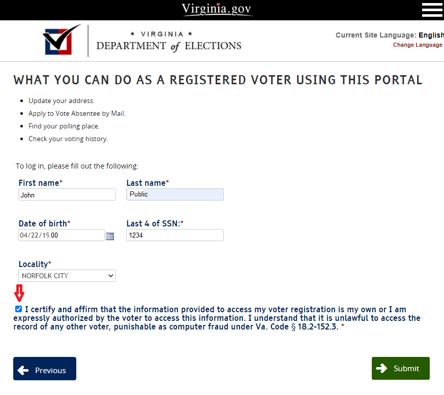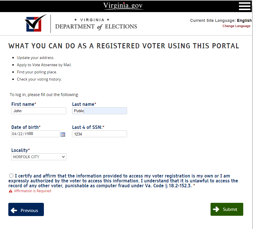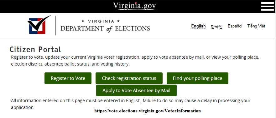 - Visit vote.elections.virginia.gov/VoterInformation.