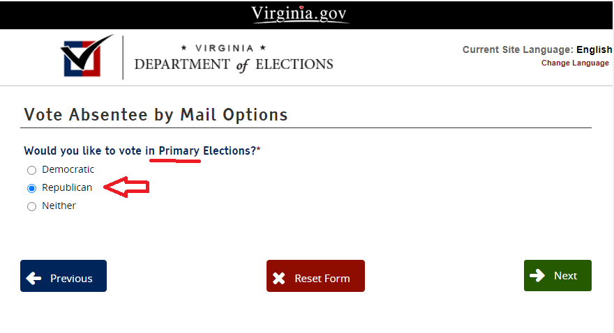 Fact: False - You may indicate on the absentee ballot application form that you want to receive absentee ballots for all future elections. Please be sure to indicate Party preference if you would like to receive a ballot for a Primary Election as Virginians do not register by party.