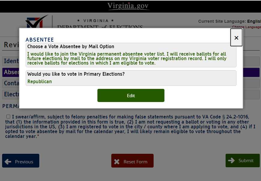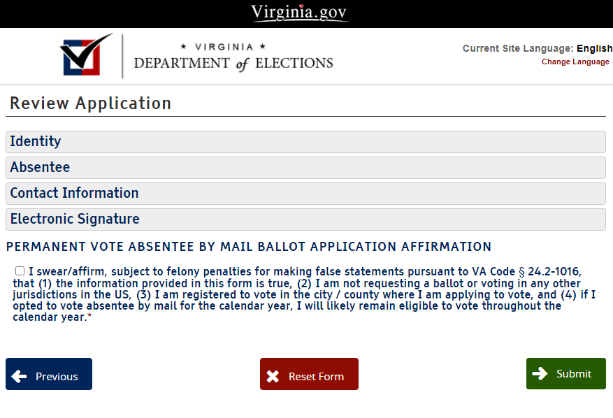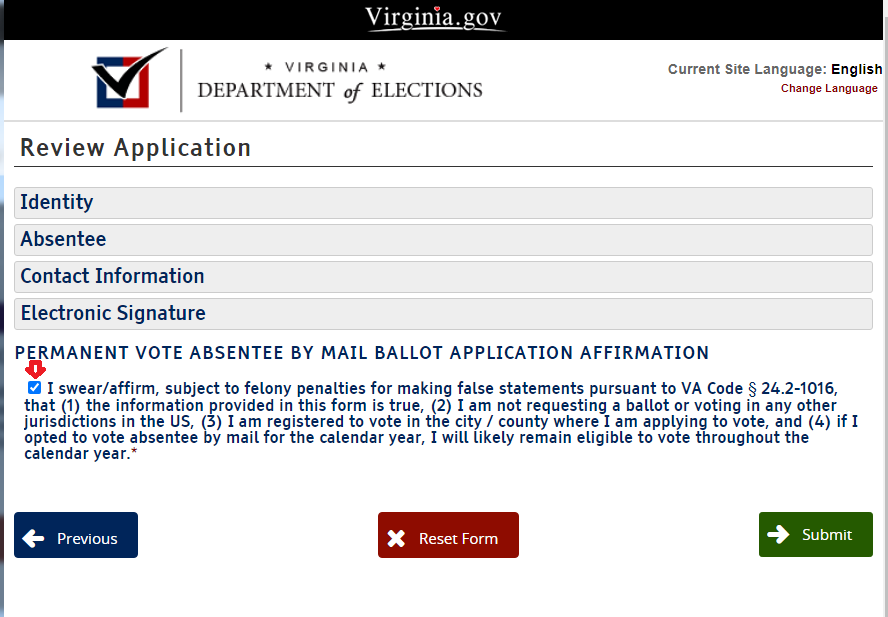 - Finally, double-check that your information is accurate and check the box stating "I want to apply to vote absentee by mail."
