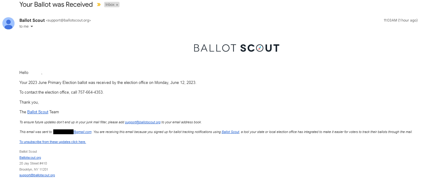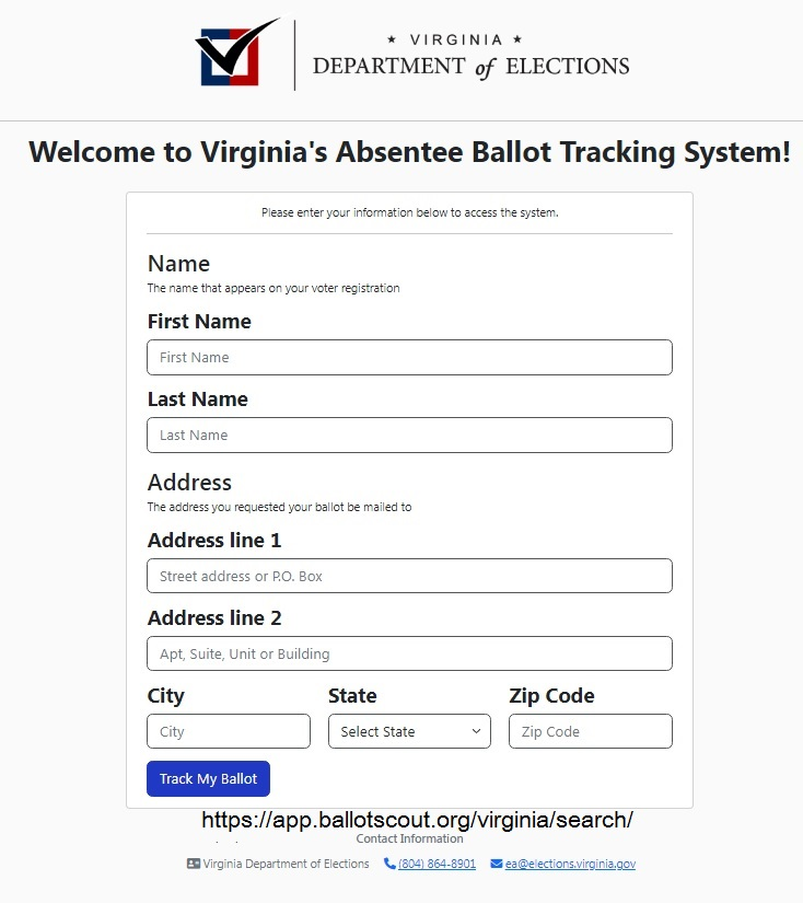 - Go to https://app.ballotscout.org/virginia/search/ and sign up to track your ballot.
